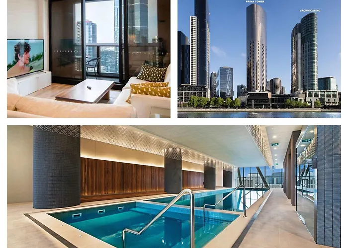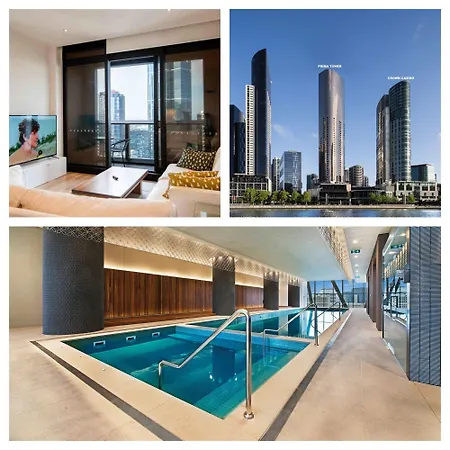 広々としたベッドルーム1室のPrima Pearl - Bright Apartment With Balcony Next To Casino, Mcec メルボルンはメルボルンの中心に位置し、Sea Life メルボルン水族館から歩いてわずか5分です。 長い一日を過ごした後は、プールでひと泳ぎしてリラックスできます。